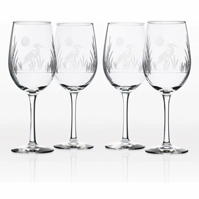 Long revered as the symbol of prosperity, a single Heron gracefully adorns a picturesque landscape. This bestselling Rolf Glass design is deeply sand-etched and diamond-wheel engraved. Pristine clear glass and elegant lines make this design an instant classic. Sold in sets of four they also make fantastic gifts.