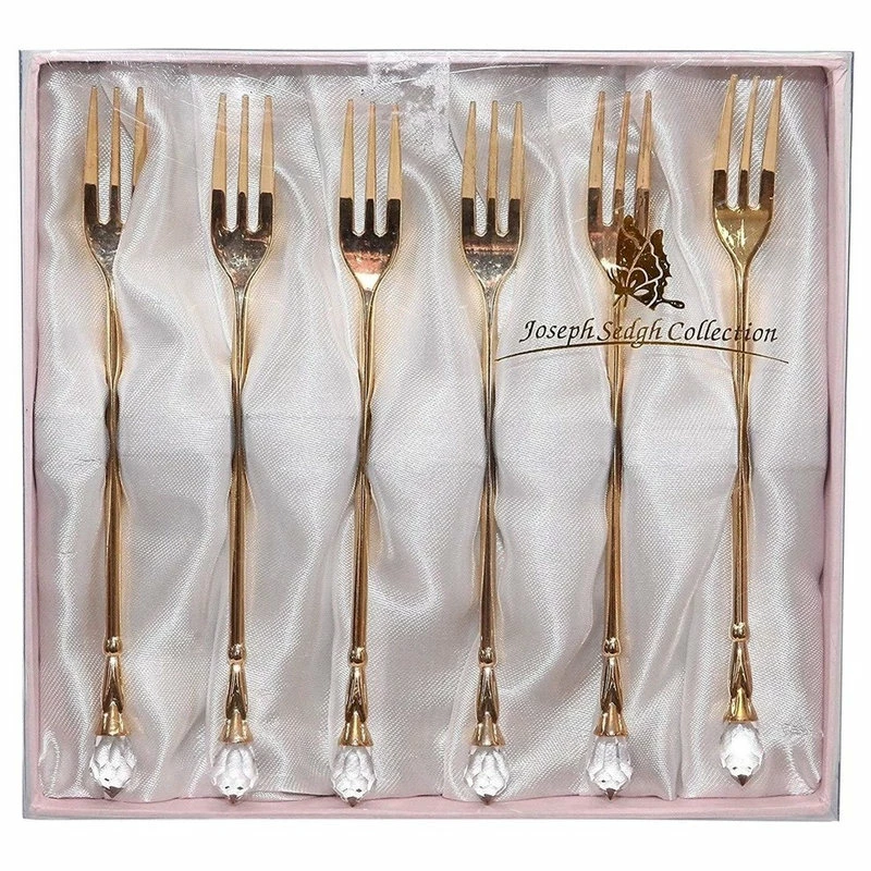 Best deal 🤩 Royal Flatware Royal 6pc 24K Gold Demi Forks Dessert Flatware Set With White Swarovski Stone 😉 -Tabletop Sales Store 7af1298e0d4053dd 1204 w800 h800 b1 p0