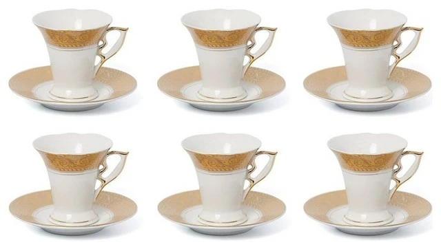- Royalty Porcelain 12-pc “Orange Floral” Miniature Espresso Coffee Set for 6, 24K Gold-Plated, Superior Quality Bone China