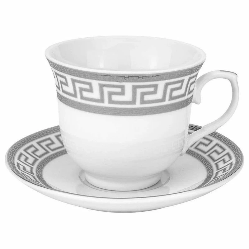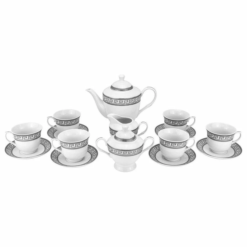 - Set includes: Set includes: 6 x Cups with 6 x Saucers, 1 x Teapot + Cover, 1 x Creamer, 1 x Sugarpot + Cover