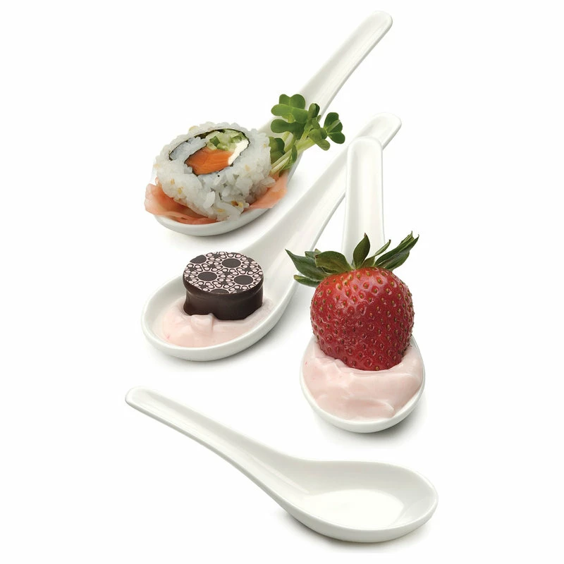 Serve soup in style with this RSVP soup spoon. Made of porcelain, it features a classic white color. This spoon has a traditional design that is used in many Asian restaurants. You can even use this spoon for holding single serve gourmet appetizers as well. Even better, this soup spoon is dishwasher safe for easy clean up.