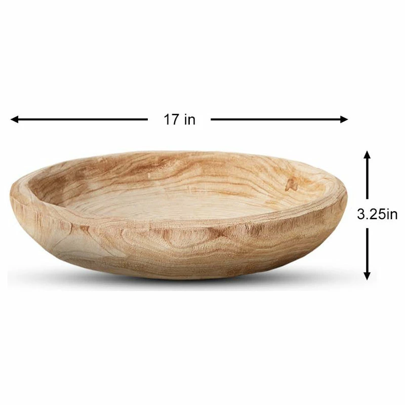 You’ll love the organic shape of this tray. This large Paulownia wood tray is great used as a fruit bowl on a dinner table. For a unique wedding or event centerpiece, fill it with a mix of tropical fruits or pair it with mini trees and topiaries on your tablescape to add some height, in our coordinating wood pots. It sold individually. 17″ Round Paulownia Wood Tray meaures 3.25″ Tall and 17″ Diameter. For dry use only. Each tray is unique. The tray you receive will vary in color, shape, and size from the ones shown. Everything we do at Serene Spaces Living is done with love, so whether your space is indoors, outdoors, big, small, or somewhere in between, we hope we can help you create something that brings a smile from within.