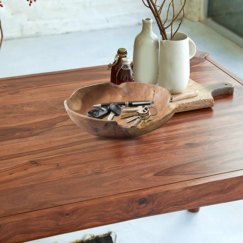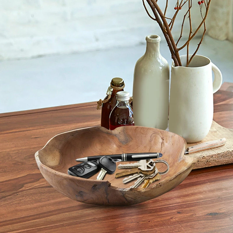 You’ll love the organic shape of this round teak wood bowl. Use it as a catchall at the entrance for keys and other trinkets, or to hold faux flowers to create a tablescape inspired by natural elements. Fill it with some fruit for a dinner table or for a bar at your wedding or event. Great as a gift or wedding favor – loaded with goodies. Sold individually, this bowl measures 6″ Long, 7.1″ Wide & 2″ Tall. For dry use only. Each bowl is unique. The bowl you receive will vary in color, shape, and size from the ones shown. Serene Spaces Living specializes in creating good quality accents that look great anywhere!