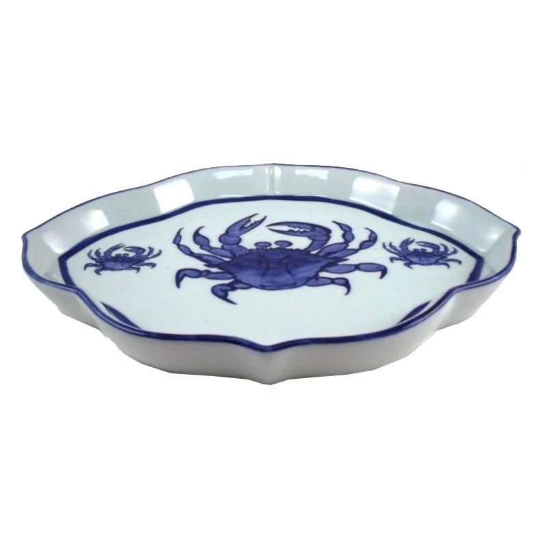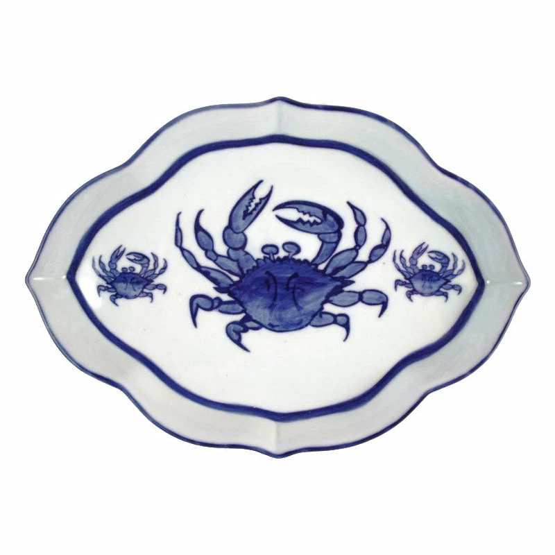 This Nautical Maryland Blue Crab Kitchen Server Platter Dish exudes coastal style and beauty. Its hand-painted details and porcelain texture contribute to its charm. Use it for family dinners or at your next celebration. It’s perfect for decorating any home by the seashore. You could also purchase it as a nice housewarming gift or wedding gift for any crab lover.. Measures 10 1/2 x 7 1/4 inches. Made of hand painted porcelain, imported