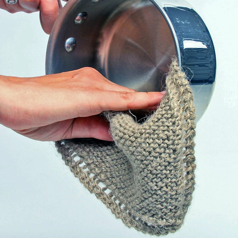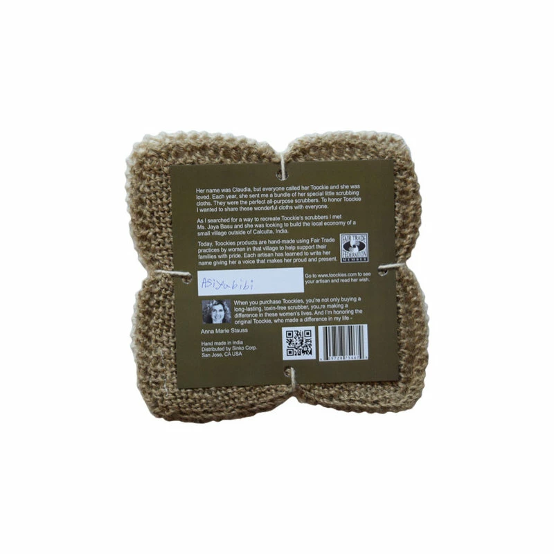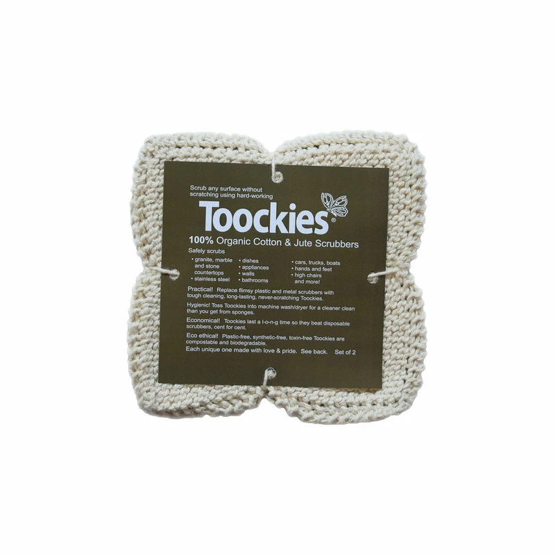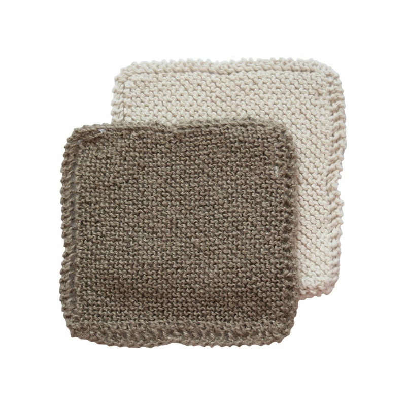 Multi-purpose scrub cloths that are handknit out of certified 100% organic cotton and natural jute. This set includes one cotton and one jute scrubber. The jute cloth is more abrasive providing extra scrubbing power.