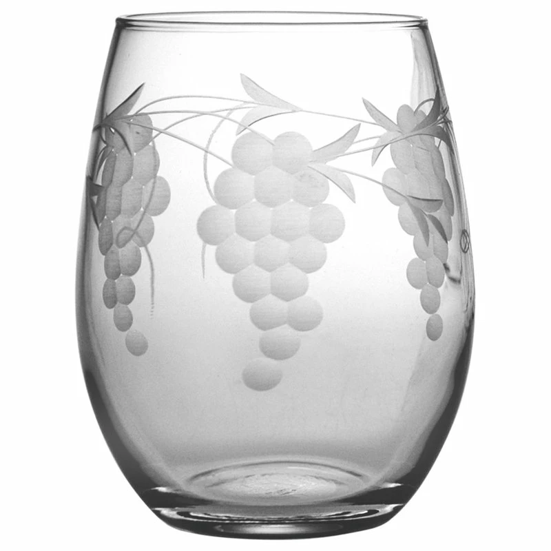 Each 15 ounce stemless tumbler features a handcut ‘Sonoma” design. Artisans use a series of rotating stone wheels to apply a grapevine design which wraps around the glass. Dishwasher safe. Sold as a set of four. Made and decorated in the USA.