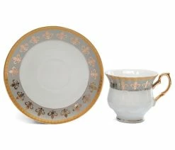 Buy ๐ Royalty Porcelain 12-pc “Fleur-de-Lis” Tea Coffee Set, 24K Gold Bone China โค๏ธ