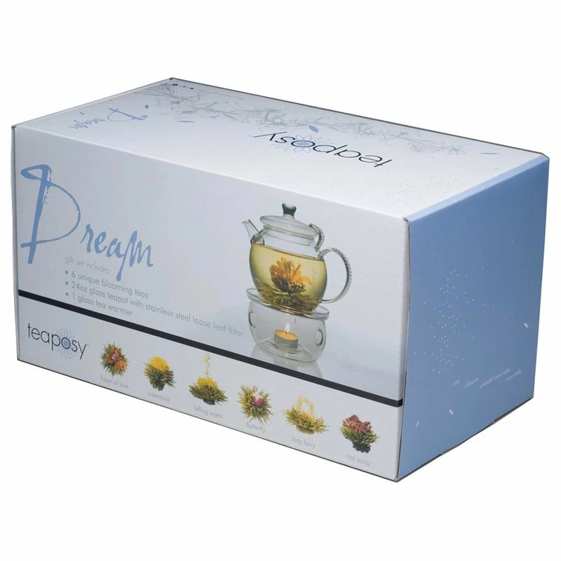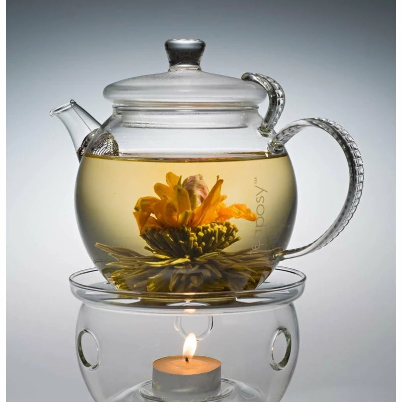 Each Teaposy blooming tea is hand-sewn with silver-needle white teas and herbal flowers. It blossoms in teapot when you add hot water, and makes 4 pots of tea in the Daydream teapot. All Teaposy glass teapots are heat resistant, not just for blooming teas, but also a perfect companion for any of your favorite loose teas.