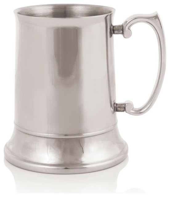 Raise your shiny stainless tankard, filled to the brim with the finest handcrafted brew. It’s a concise statement vessel with an audacious handle, double-walled and unbreakable. Hand wash.