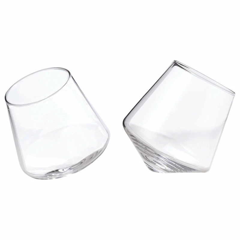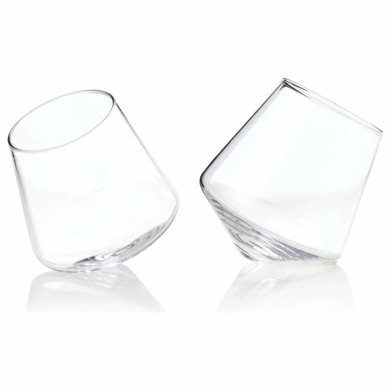 Statement drink ware deserves a place in any connoisseurs cabinet. Nothing fits the bill better than a pair of rolling tumblers, perfect for showing off the rich hues of neat drinks and fine wines. Use the pointed base to swirl your glass on a flat surface, oxygenating your drink of choice. Set of 2.