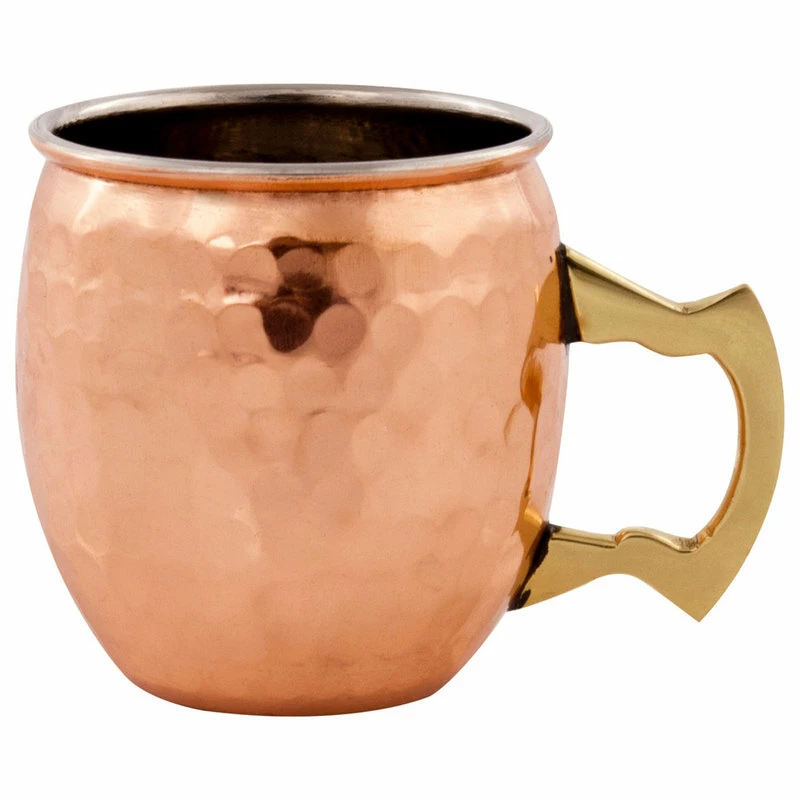 The pocket-sized version of the classic Moscow Mule mug holds two ounces of said concoction, or of something stronger. Hammered copper catches the light to twinkle jovially in your home kitchen or at a party.