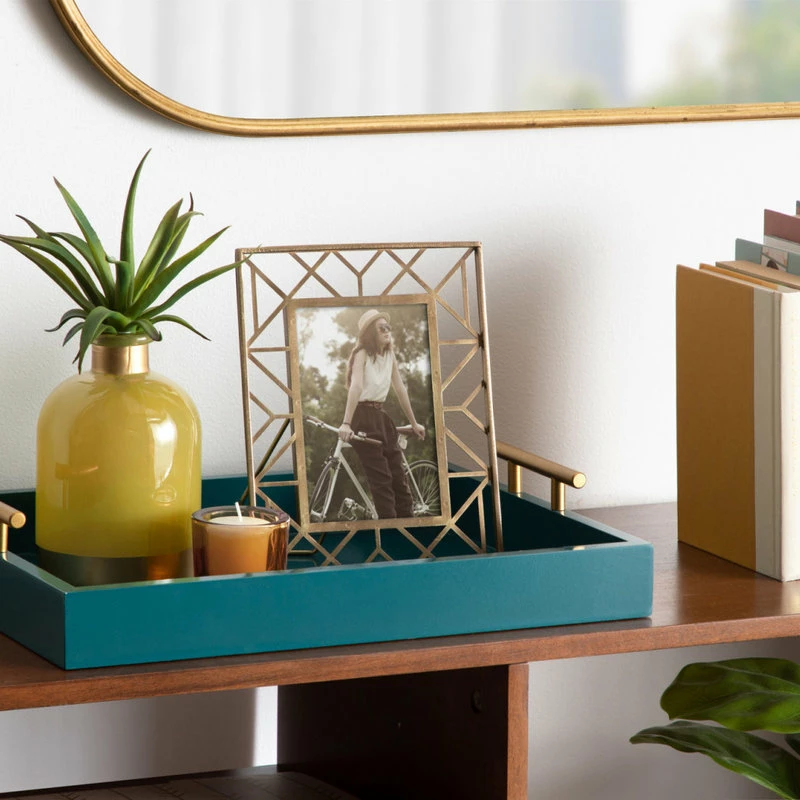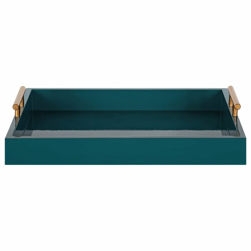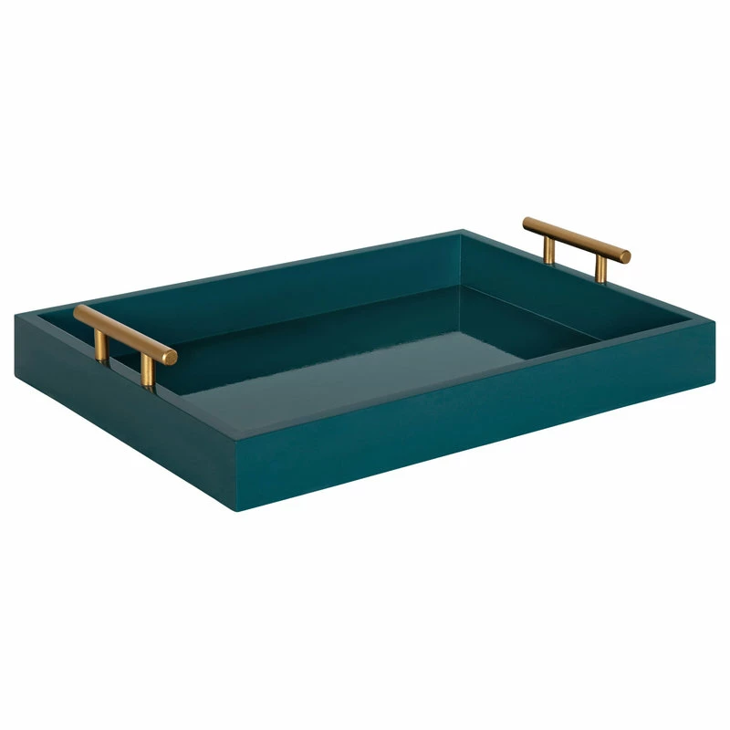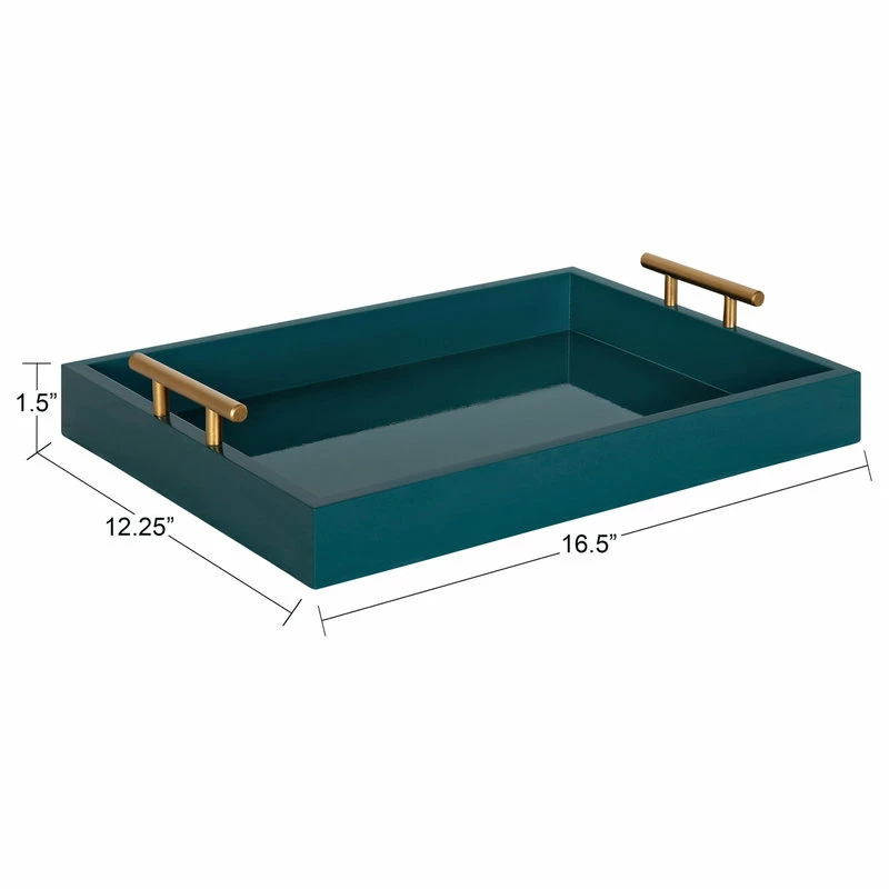 - GLAM FINISH: Decorative contemporary tray with a beautiful dark teal base and complementing gold metal handles will be an elegant accent in your home