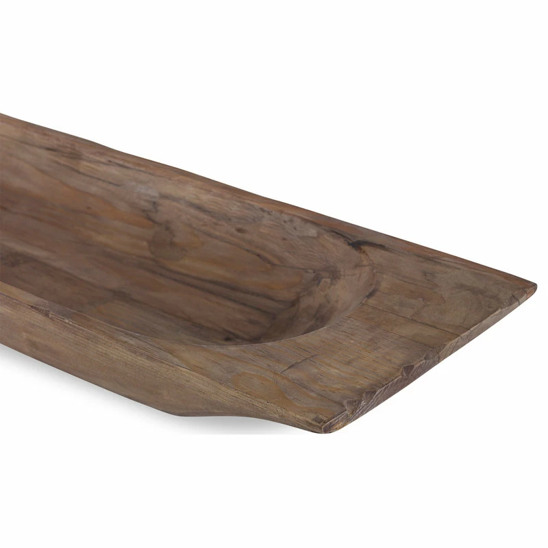 Authentic reproduction of an India dough tray used for mixing and kneading the dough. Handcrafted from solid reclaimed wood, so each will vary slightly in size and finish. Our trays include an iron band, that was often added to help control the splitting of the solid wood dough trays. Solid wood will continue to move with temperature and humidity changes, which can result in small cracks and uneven surfaces, adding to its authenticity and character.