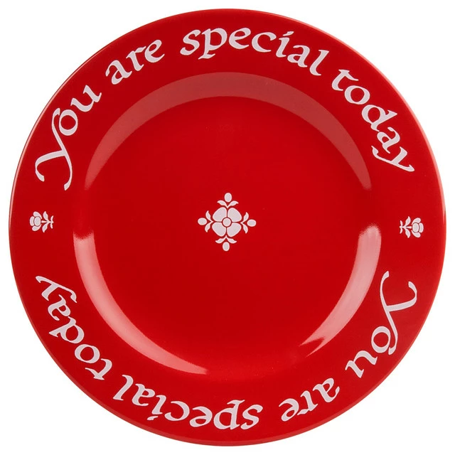 It is a time-honored tradition among many families that when someone deserves special praise, they are served dinner on The Red Plate. Acknowledge your family’s special triumphs with the You Are Special Today Plate. Use the plate to commemorate birthdays, engagements, graduations, a new baby or new house, Mother’s Day, Father’s Day, anniversaries, homecomings, promotions…the possibilities are endless! Arrives gift-boxed, with a permanent marker that can be used to note the reason for celebration on the bottom of the plate. 10.5″ diameter. Microwave and dishwasher safe.