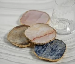 Flash Sale ๐คฉ Studio Art & Stone Tumbled Marble Coaster St/4 With Coaster Stand, Banded Agate ๐