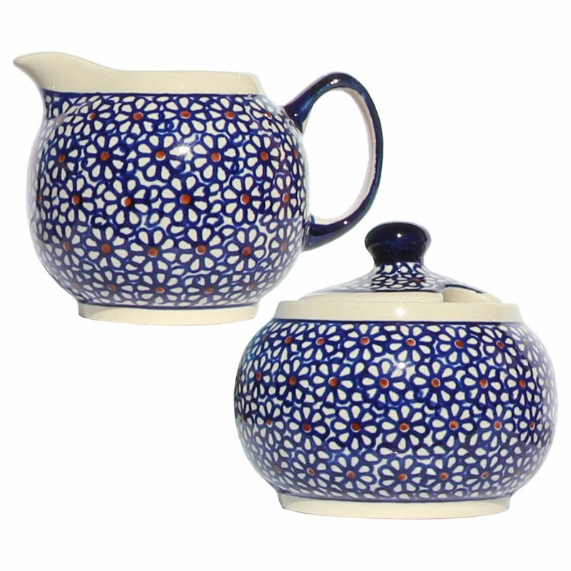 Use&Care: The Polish Pottery Sugar Bowl and Creamer is oven, dishwasher, stove, and microwave oven-safe, lead and cadmium-free, and chip-resistant.