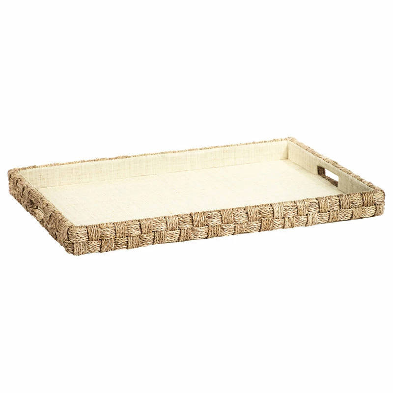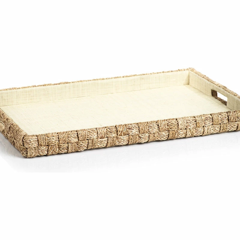 Abaca rope rectangular serving tray features cut out handles design with the lattice design and a fabric liner for a neat and modish look. *Natural finish *Blends well in coastal aesthetics *For indoor use only *Wipe with dry cloth