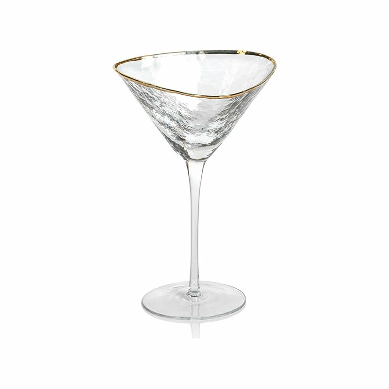 One of the festive and most fun ways to serve your guests is this set of martini glasses. Made of glass, accented with a gleaming gold rim. The versatile functional coupe shape adds sass to martinis, champagne and craft cocktails. Hand wash only.